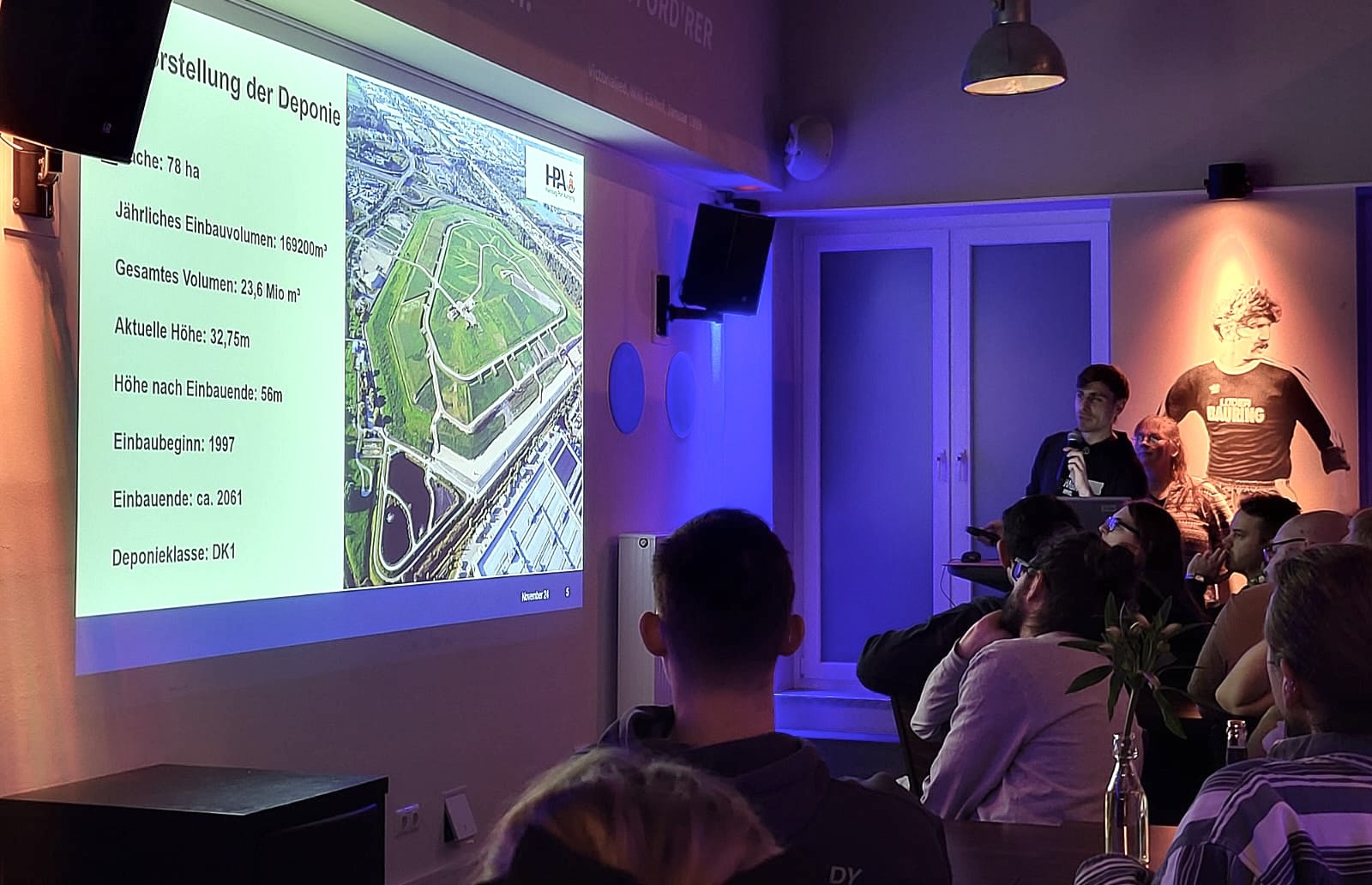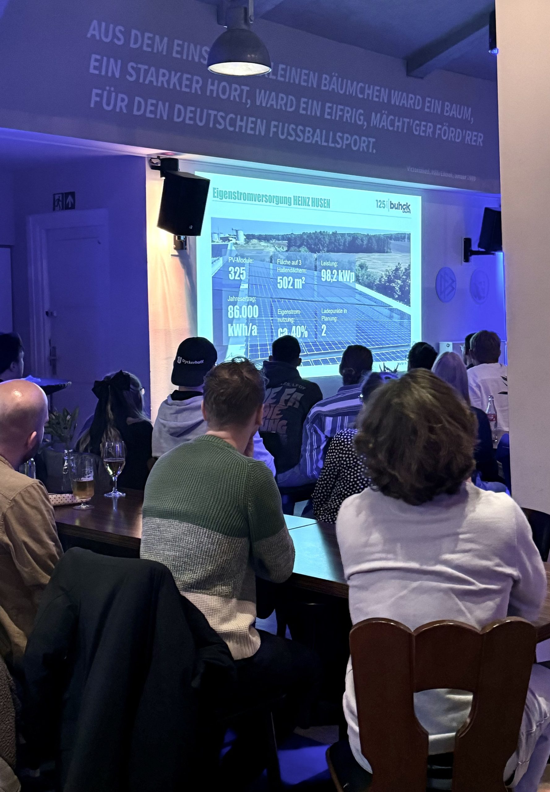 Die Buhck Gruppe hat sich als Umweltdienstleister der Klimaneutralität verschrieben. Wie das gelingen kann, konnte Herr Wilke in seiner Präsentation transparent erläutern. Von der Elektrifizierung der Logistikflotte der Fa. Buhck bis hin zu den innovativen Geschäftsbereichen „2nd Life Solar“ und „Mobile Wärme“ konnten die Techniker:innen einen informativen Einblick gewinnen. „2nd Life Solar“ ist die Idee abgeschriebene PV-Module zu prüfen und wieder zu verwenden. Mit „Mobile Wärme“ ist der Transport von Wärme aus Kraft-Wärme-Kopplungen gemeint. Dabei wird die Überschusswärme per LKW zu verschiedenen Verbrauchern gefahren. Also vereinfacht gesagt: Fernwärme ohne Leitung.