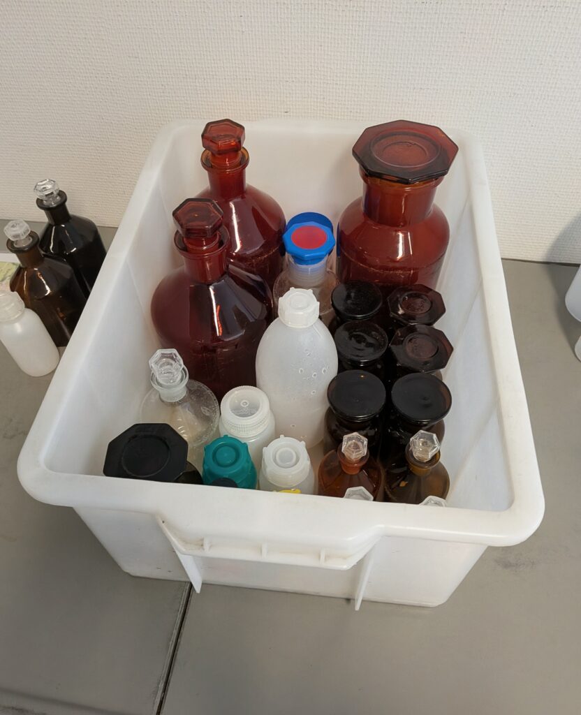 Die Anzahl der Probengefäße die für eine einzige Entnahmestelle benötigt werden (s. Foto), zeugen von der Qualität und Quantität der Analysen.