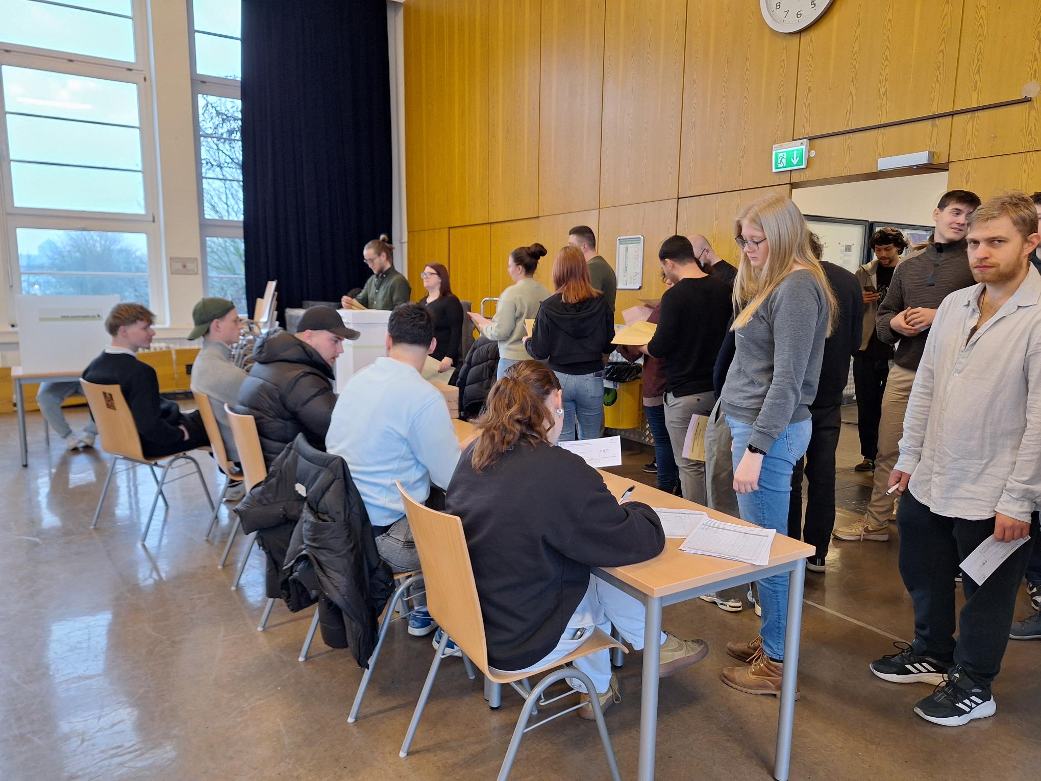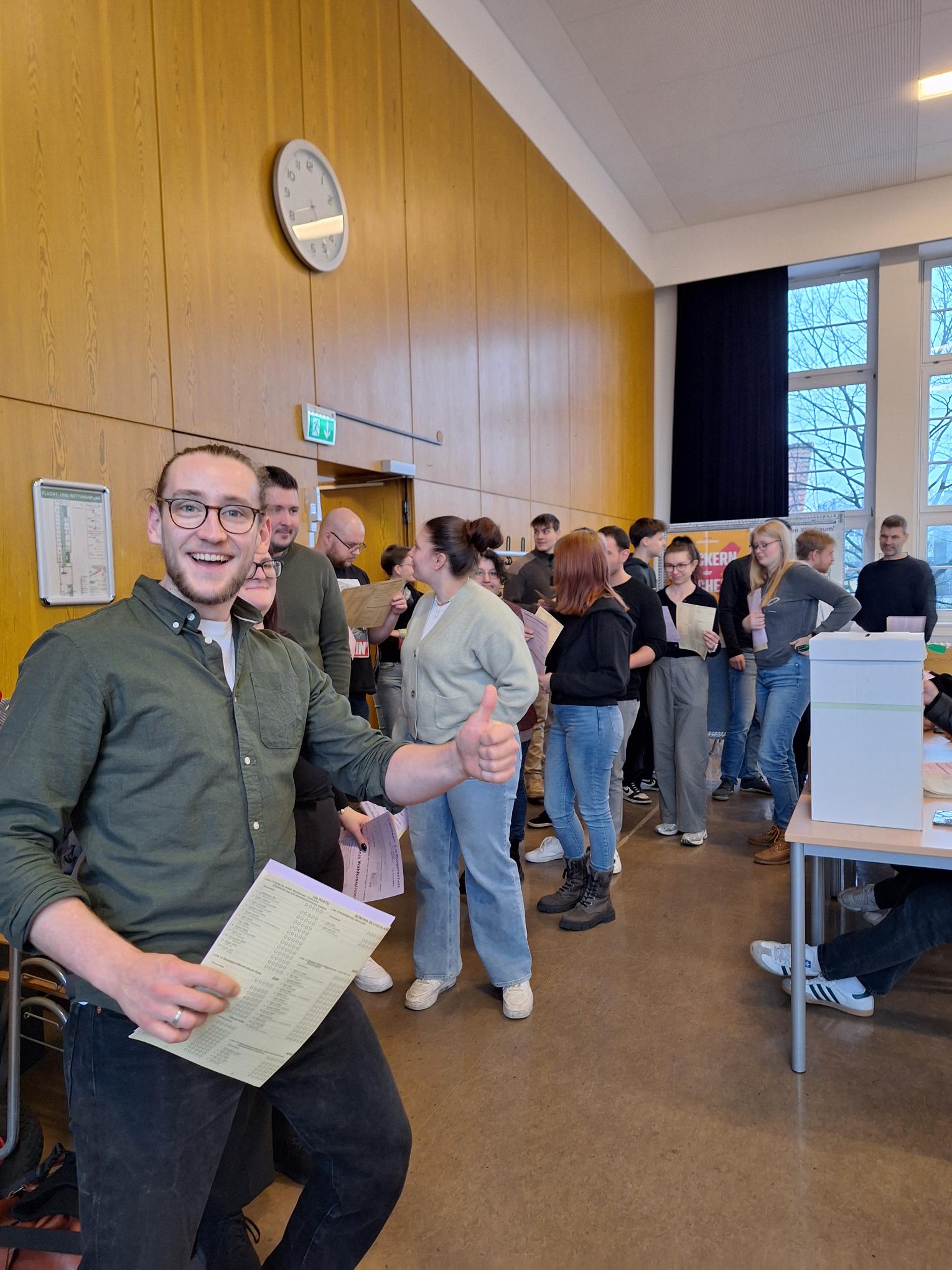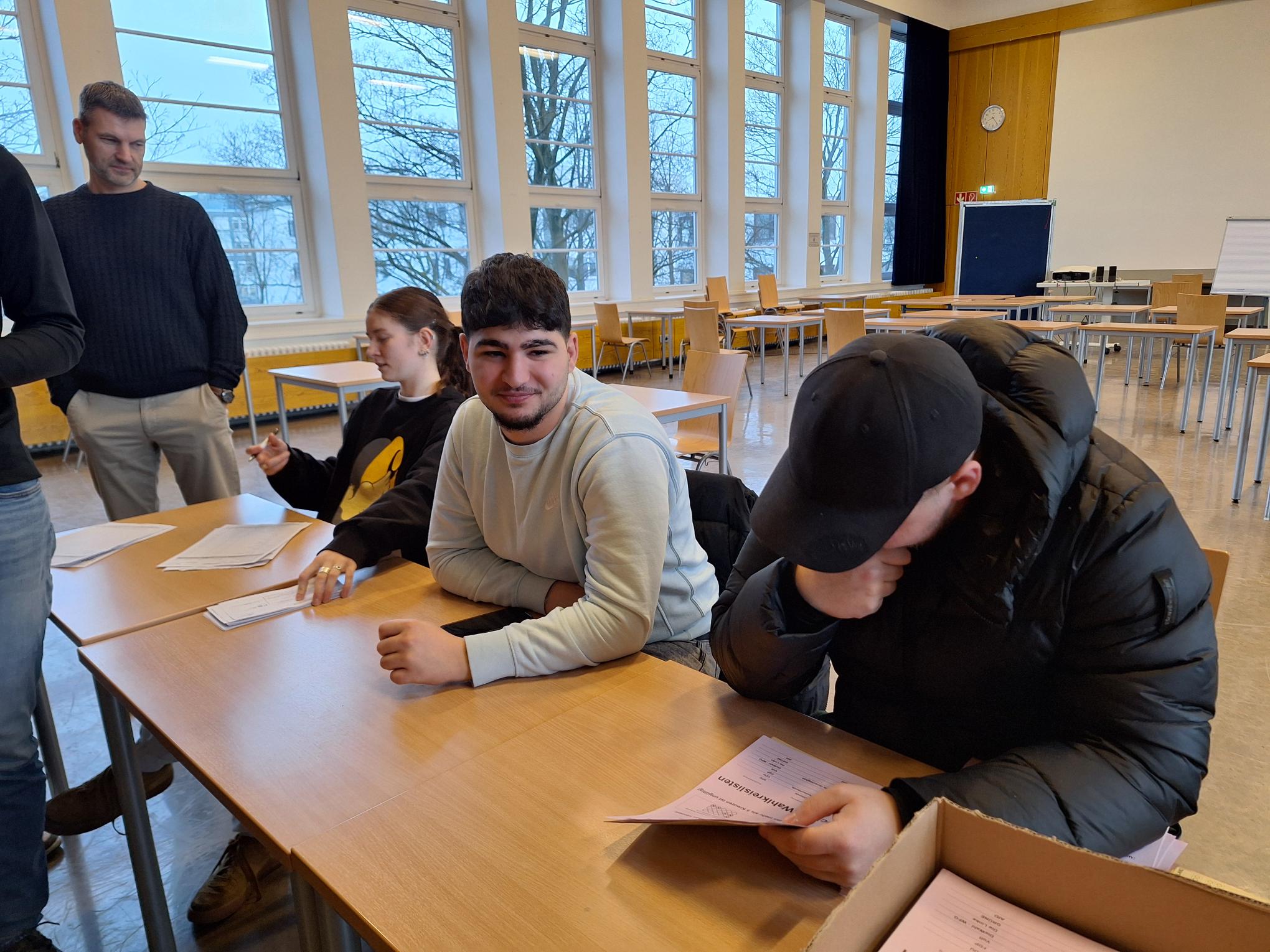 Die Schülerinnen und Schüler kümmerten sich um die organisatorische Umsetzung, bereiteten die Wahlkabinen und die Wahlurne vor und stellten sicher, dass der Ablauf reibungslos funktionierte. Am Wahltag selbst wurden die Erstwählerinnen und Erstwähler herzlich empfangen und erhielten eine Einführung in den Wahlprozess. Viele Teilnehmende nutzten die Gelegenheit, um erste Erfahrungen mit einer demokratischen Wahl zu sammeln.