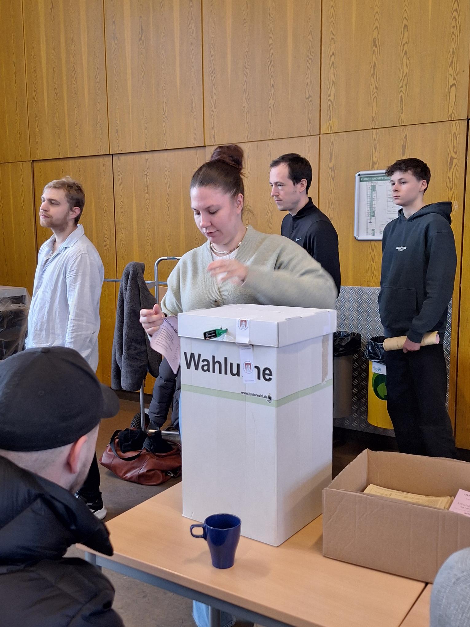 Am 26. Februar 2025 fand an der BS08 die Juniorwahl zur Hamburger Bürgerschaft statt – ein spannendes Ereignis, das viele Schülerinnen und Schüler zur aktiven Auseinandersetzung mit demokratischen Prozessen motivierte. Besonders engagiert zeigten sich die Schülerinnen und Schüler des 2. Ausbildungsjahres, die als freiwillige WahlhelferInnen die Wahl mit großer Sorgfalt und Einsatz organisierten und durchführten.