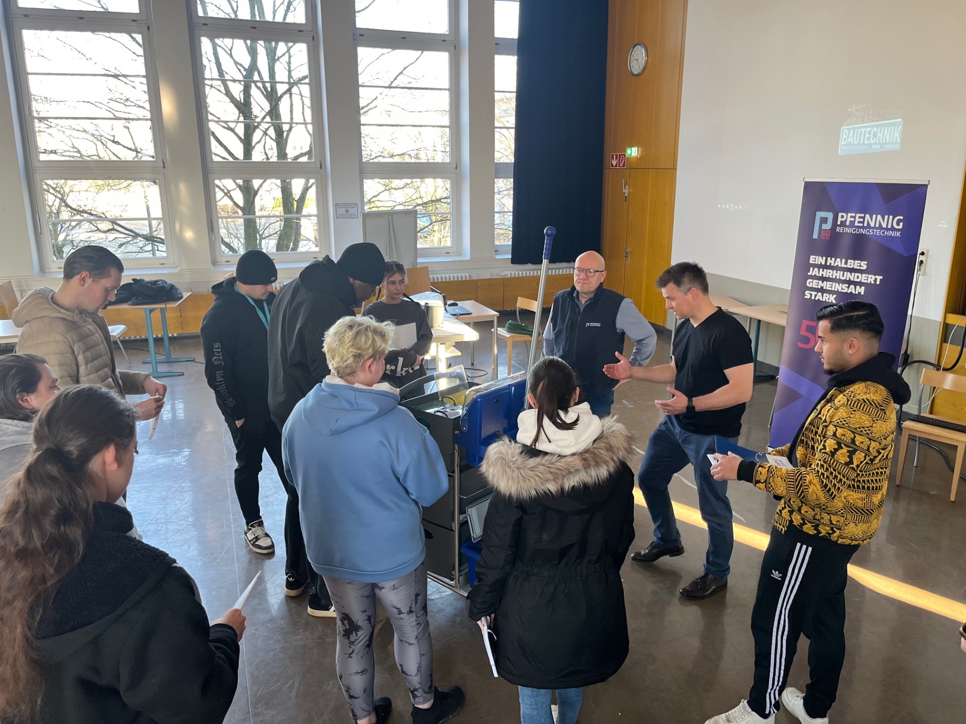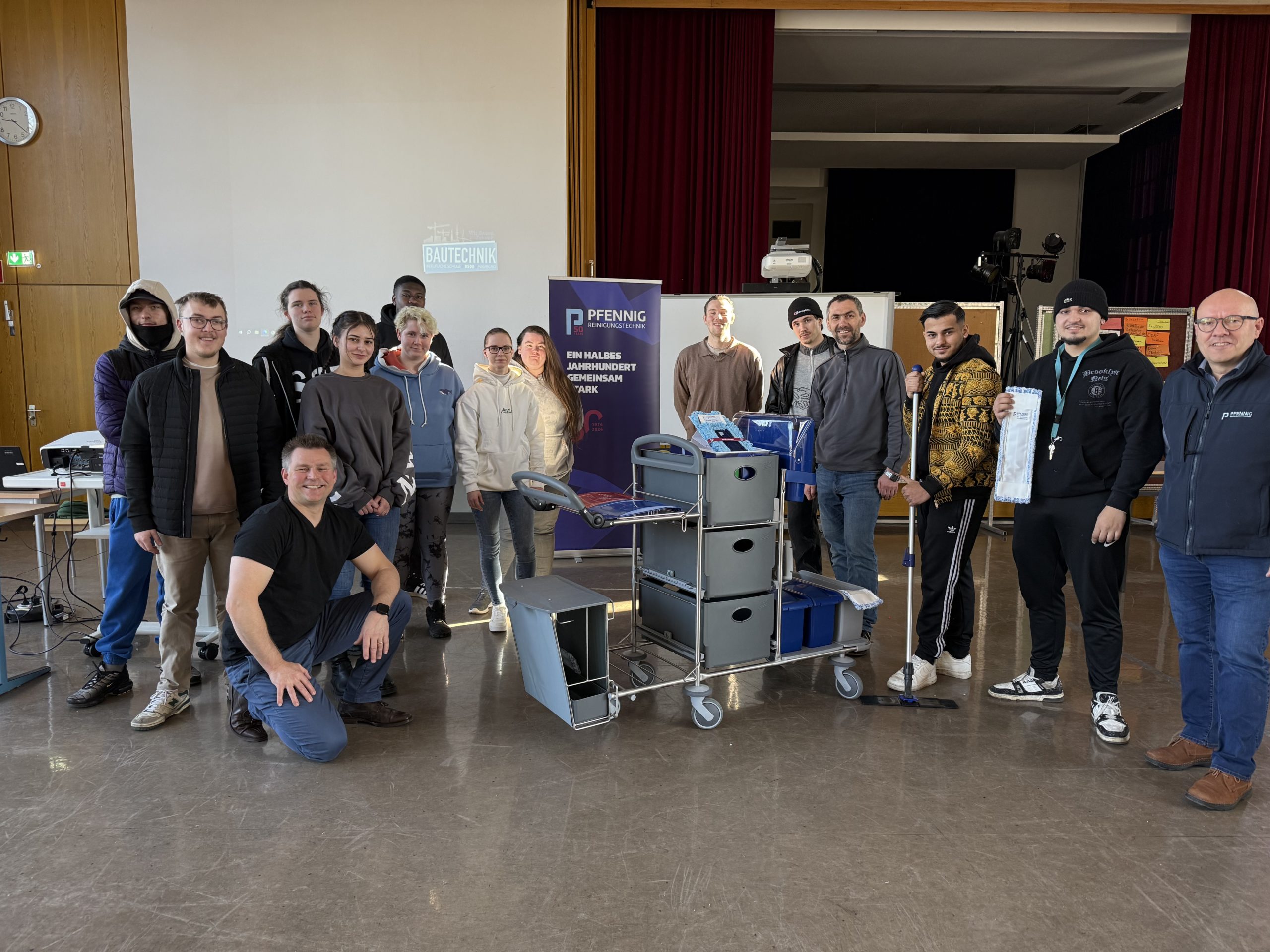 Die Berufliche Schule für Bautechnik (BS08) freut sich über die großzügige Unterstützung der PFENNIG Reinigungstechnik GmbH. Das Unternehmen stellte den Auszubildenden zur Gebäudereinigerin und zum Gebäudereiniger einen hochmodernen Reinigungswagen zur Verfügung, der ab sofort im Ausbildungsalltag eingesetzt wird.