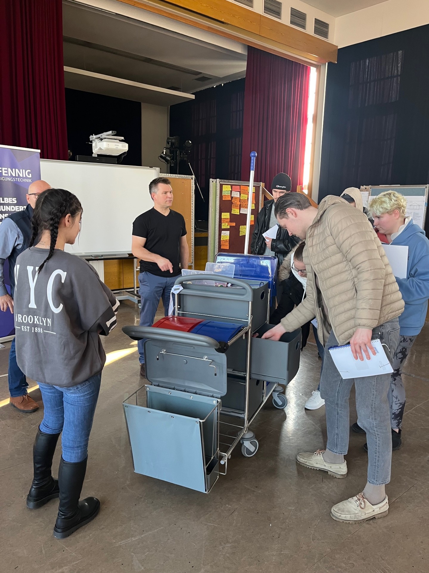 Das Lehrkräfteteam der Gebäudereiniger an der BS08 bedankt sich herzlich bei der Firma PFENNIG Reinigungstechnik für diese wertvolle Unterstützung der Ausbildung. Ein besonderer Dank gilt Herrn Schenk, der den neuen Reinigungswagen persönlich präsentierte und den Auszubildenden die innovativen Funktionen erläuterte. Durch dieses Engagement wird ein bedeutender Beitrag zur praxisnahen und zukunftsorientierten Ausbildung im Gebäudereiniger-Handwerk geleistet.