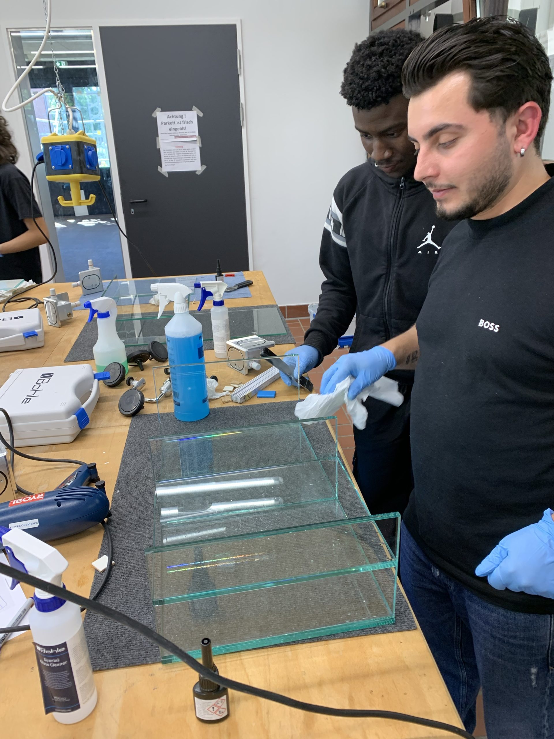 Am 15.5. und 16.5. fanden in der frisch sanierten Glaswerkstatt der BS08 wieder 2 Seminartage für die Auszubildenden des Glaserhandwerks statt.