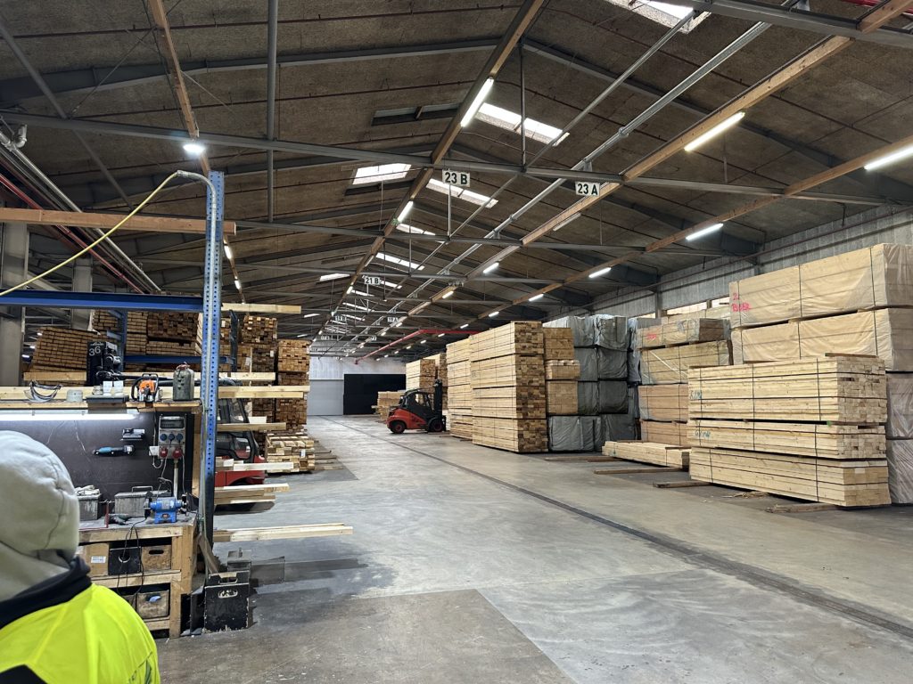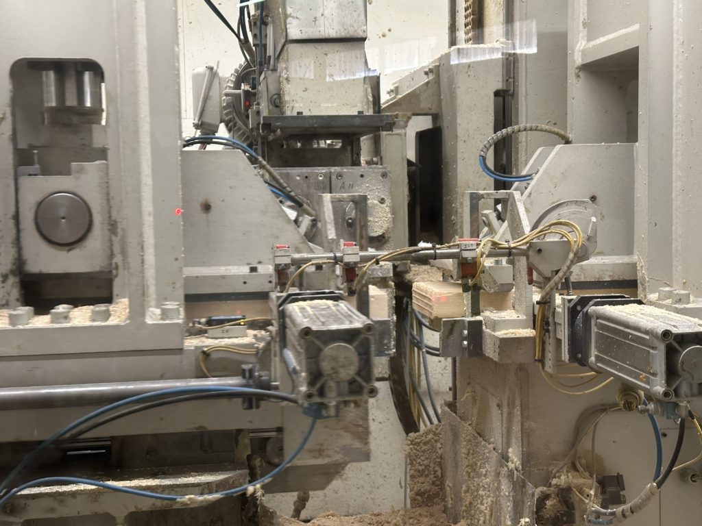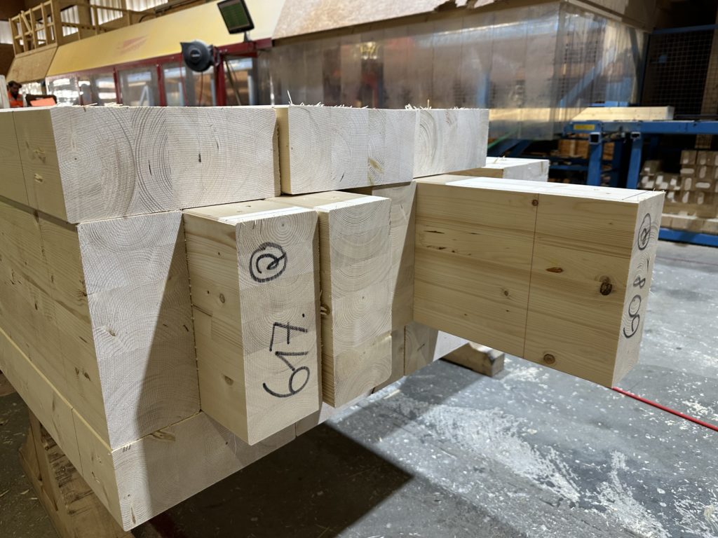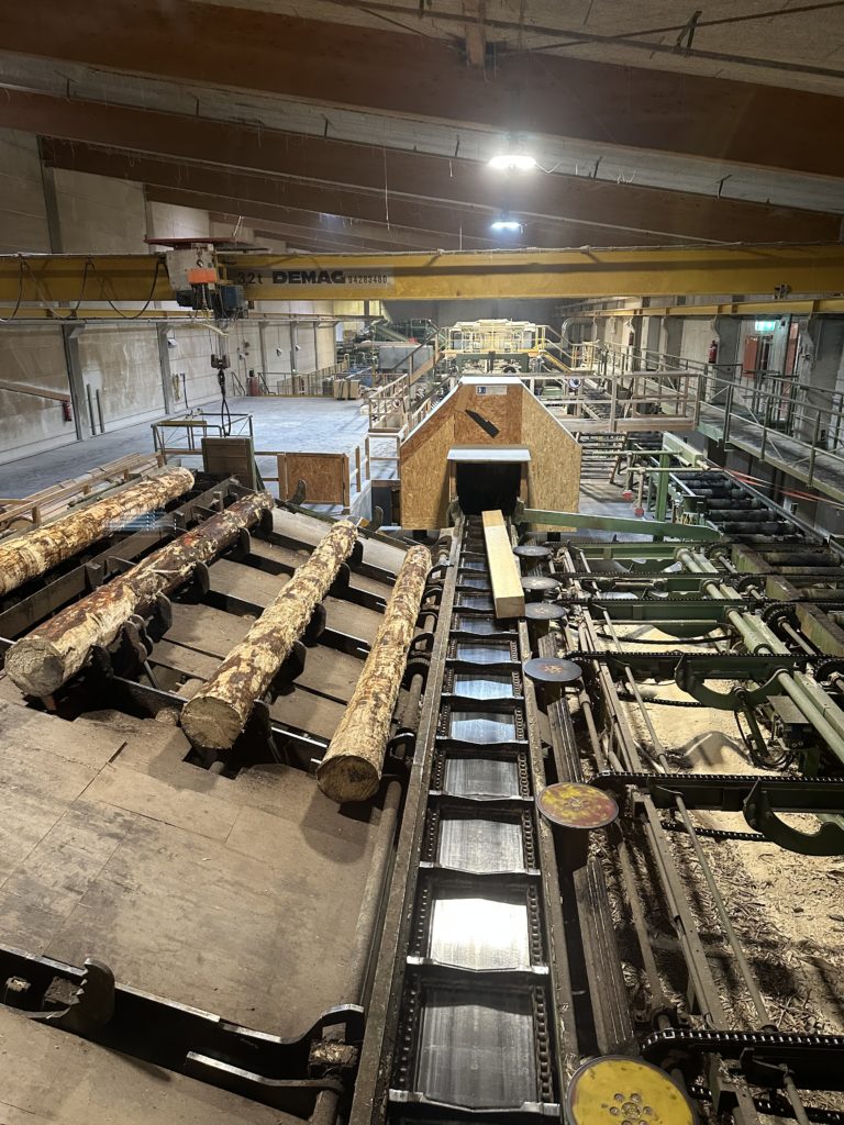 Zu Beginn der Besichtigung wurde der Rundholzeinschnitt vorgestellt: Das angelieferte Holz wird zunächst vermessen und anschließend mit leistungsstarken Maschinen zu Balken verarbeitet. Danach folgt die Trocknung, das Keilzinken und Hobeln des Holzes – wichtige Schritte, um die Qualität und Maßhaltigkeit des Werkstoffs sicherzustellen.