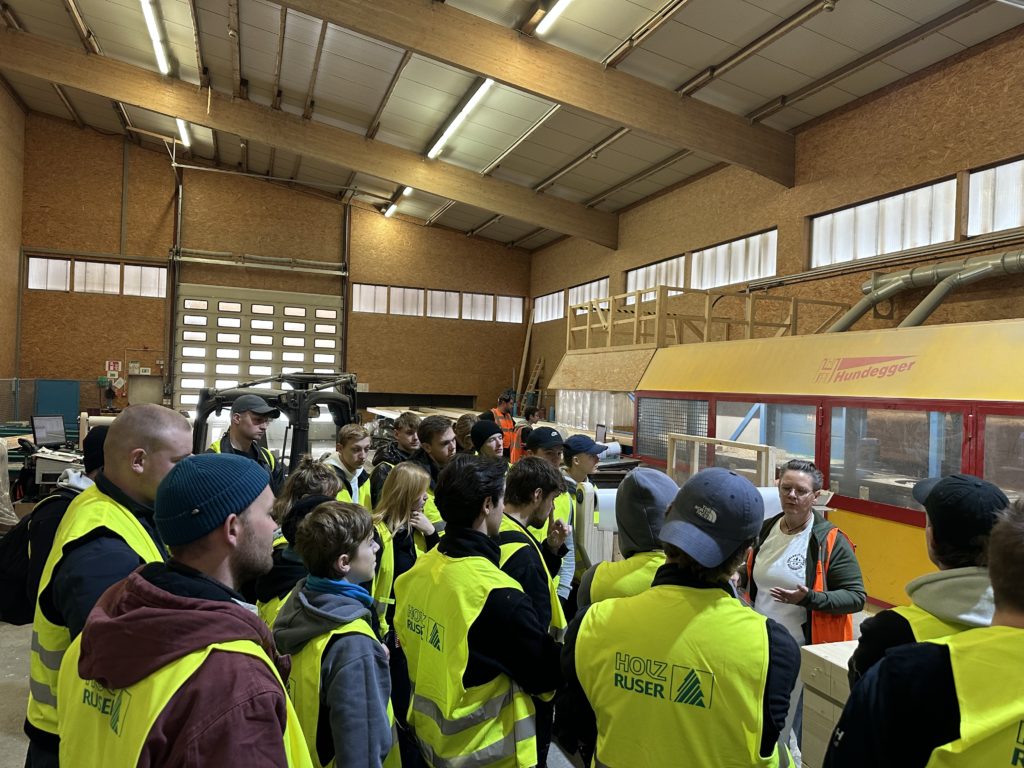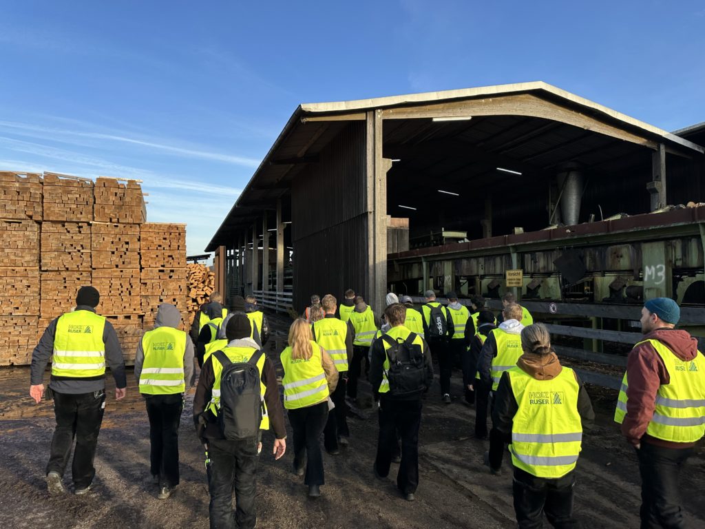 Am 13. November 2025 besuchten die 24 neuen Zimmerer-Auszubildenden das Sägewerk Holz Ruser in Bornhövede (Schleswig-Holstein).